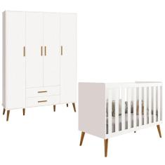 O menor preço encontrado no Brasil para Berço Americano 2 em 1 e Guarda Roupa Isis Retrô 4 Portas 2 Gavetas Branco Fosco - Reller atualmente é R$ 2.077,35.
