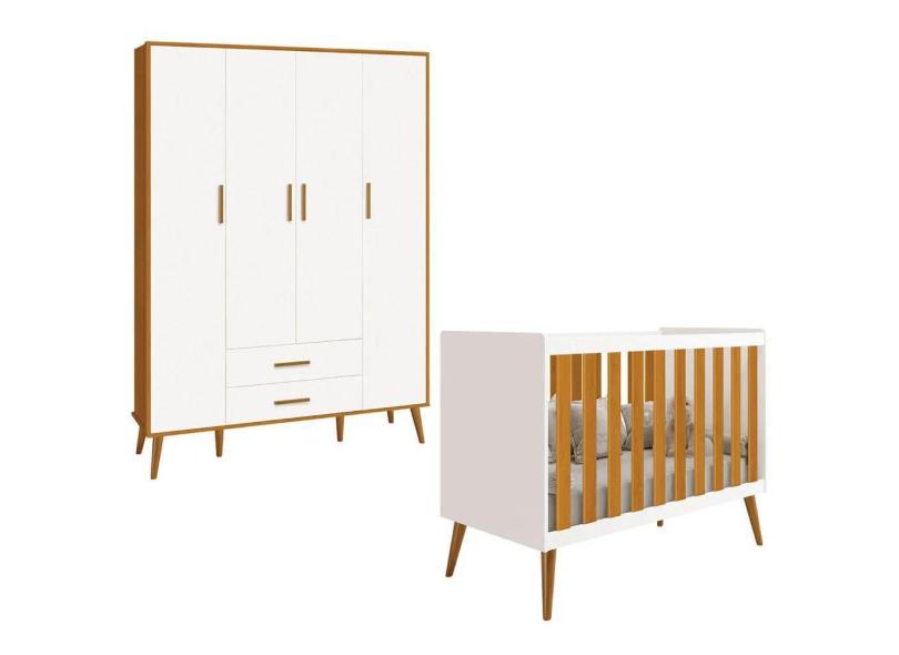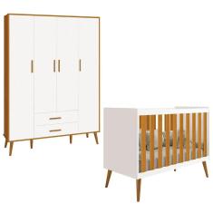 Berço Americano 2 em 1 e Guarda Roupa Isis Retrô 4 Portas 2 Gavetas Branco Fosco/ Savana Fosco - Reller