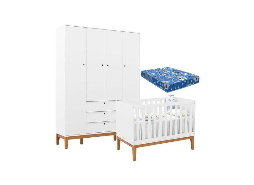 Berço Americano E Guarda Roupa Unique 4 Portas Branco Soft Eco Wood Co