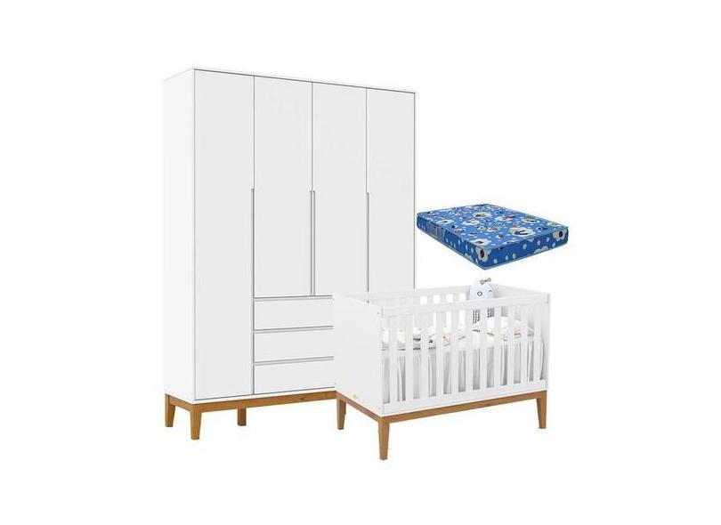 Berço Americano Unique E Guarda Roupa 4 Portas Nature Clean Branco Sof