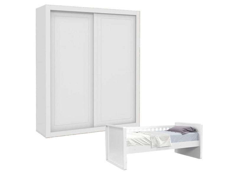 Cama Babá e Guarda Roupa Infantil 2 Portas Tutto New Branco Acetinado - Matic