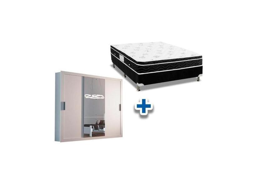 Cama Box Casal + Colchão Physical Spring + Guarda Roupa Veneza Luxo Br