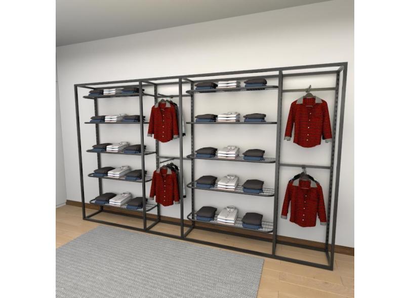 Closet Araras, Guarda Roupas Aberto Industrial Com 22 Peças Preto Fdprp507