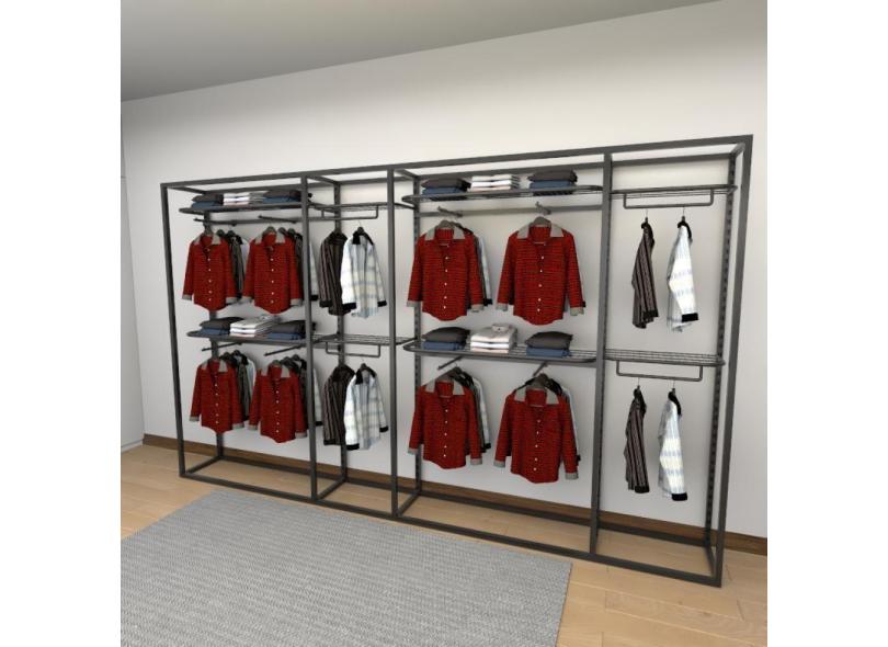 Closet Araras, Guarda Roupas Aberto Industrial Com 24 Peças Preto Fdprp482