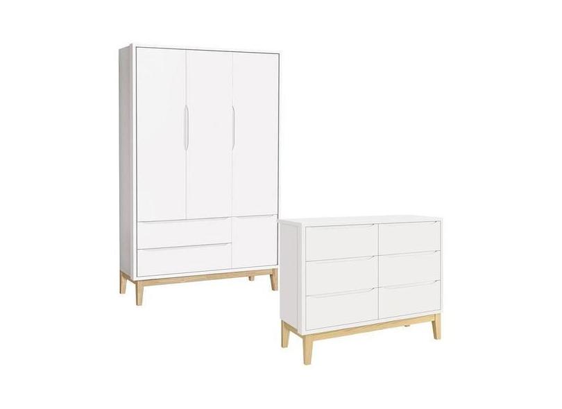 O menor preço encontrado no Brasil para Cômoda 6 Gavetas E Guarda Roupa 3 Portas New Classic Branco Com Pés Ma atualmente é R$ 1.985,90.