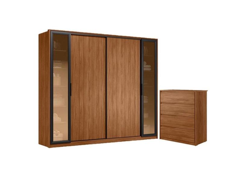 O menor preço encontrado no Brasil para Cômoda Atria 4 Gavetas e Guarda Roupa Casal Laredo Nogueira Touch com Vidro Reflecta Demóbile - Demartêz atualmente é R$ 2.345,40.