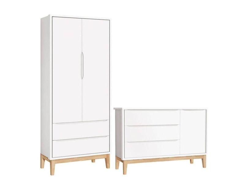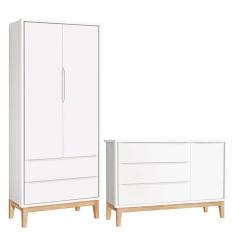 O menor preço encontrado no Brasil para Cômoda Com Porta E Guarda Roupa Infantil 2 Portas New Classic Branco Com Pés Madeira Natural - Reller atualmente é R$ 1.452,11.