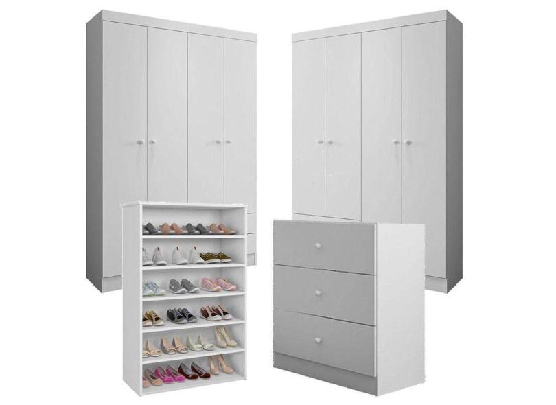 Cômoda E 02 Guarda Roupa Louise E Sapateira Laís Branco Brilho - Ajl