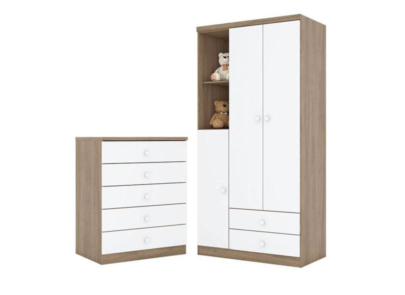 O menor preço encontrado no Brasil para Cômoda e Guarda Roupa Infantil Bala de Menta Rústico Branco - Henn atualmente é R$ 817,20.