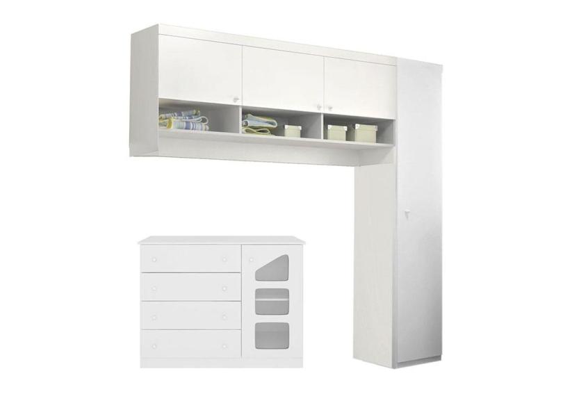 O menor preço encontrado no Brasil para Cômoda e Guarda Roupa Infantil Eloisa 1 Porta com Modulo Aéreo Branco Brilho - Phoenix Baby atualmente é R$ 1.127,70.