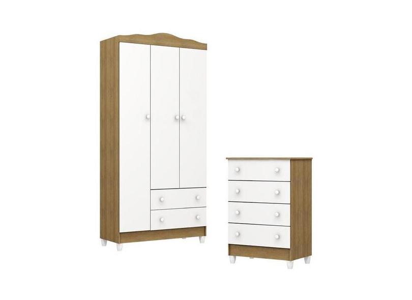 Cômoda Gaveteiro E Guarda Roupa Mel Flat Branco Acetinado Amadeirado -
