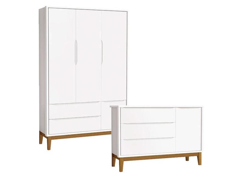 O menor preço encontrado no Brasil para Cômoda Infantil E Guarda Roupa 3 Portas New Classic Branco Com Pés Madeira - Reller atualmente é R$ 1.717,20.