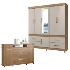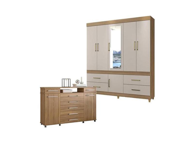 Cômoda London E Guarda Roupa Casal Guarujá Amêndola Off White - Demóbi