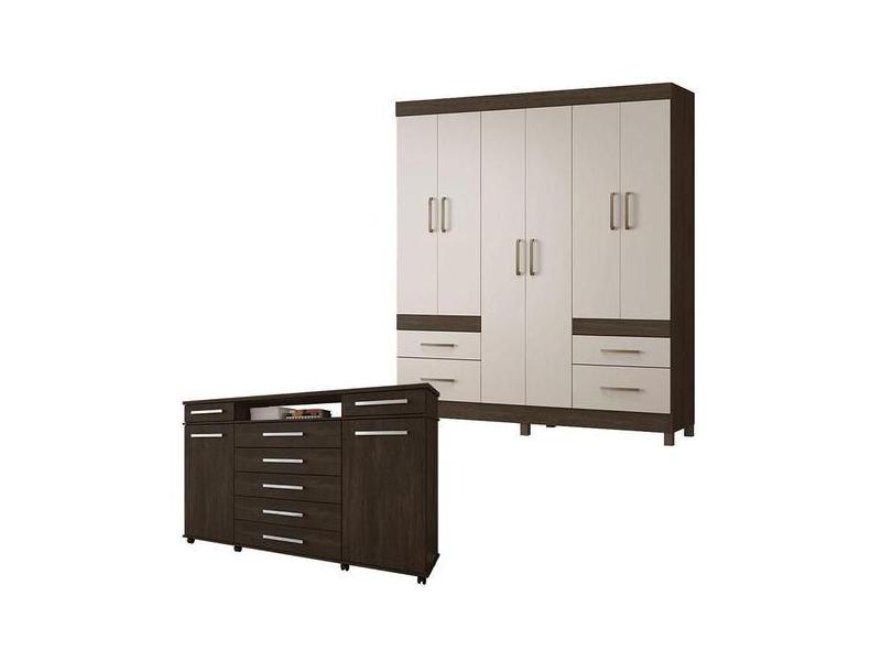 Cômoda London E Guarda Roupa Casal Poema Ébano Off White - Demóbile -