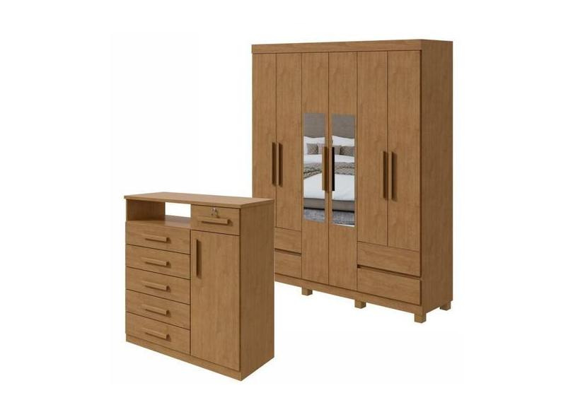 Conjunto De Guarda-Roupa 6 Portas 4 Gavetas Zeus Com Espelho E Com Pés