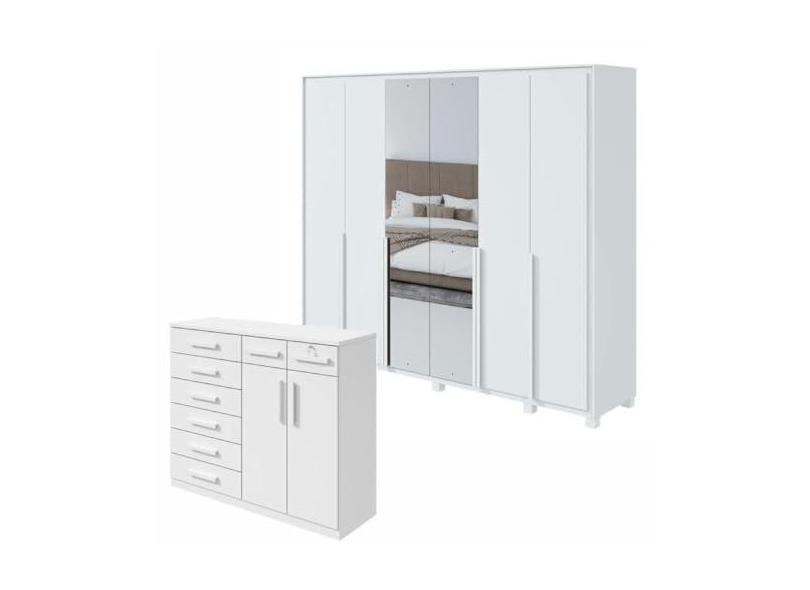 Conjunto de Guarda-roupa 6 Portas com Espelho e Pés Imperatore com Cômoda Toronto Branco