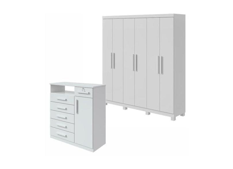 Conjunto de Guarda-roupa 6 Portas com Pés Jazz e Cômoda Da Vinci Branco