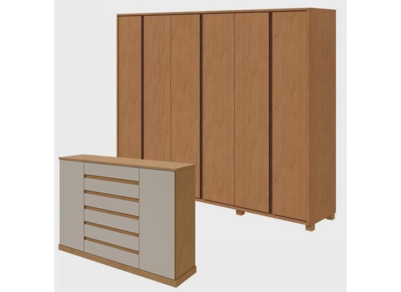 O menor preço encontrado no Brasil para Conjunto de Guarda-Roupa Casal Leder 6 Portas com Pés e Cômoda 2 Portas Vedra Amêndoa Clean atualmente é R$ 2.849,96.