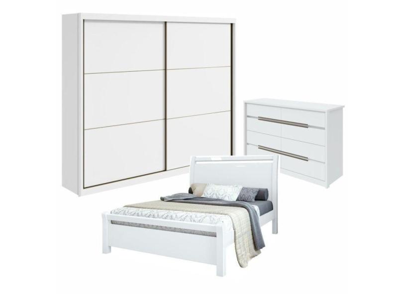 Conjunto de Guarda-Roupa Casal Toronto Plus e Cômoda Urban e Cama Casal Reali Branco