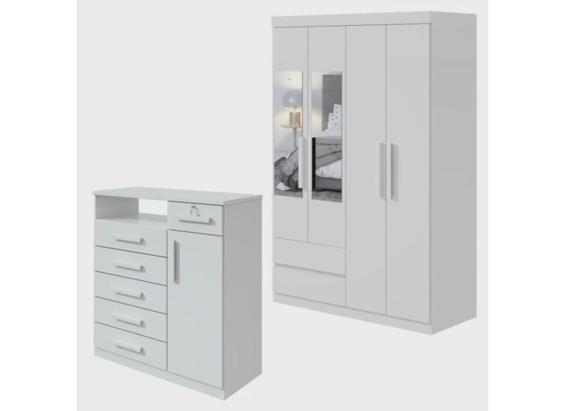 O menor preço encontrado no Brasil para Conjunto de Guarda-Roupa Solteiro com Espelho 4 Portas 2 Gavetas Zeus e Cômoda Da Vinci Branco atualmente é R$ 1.254,47.