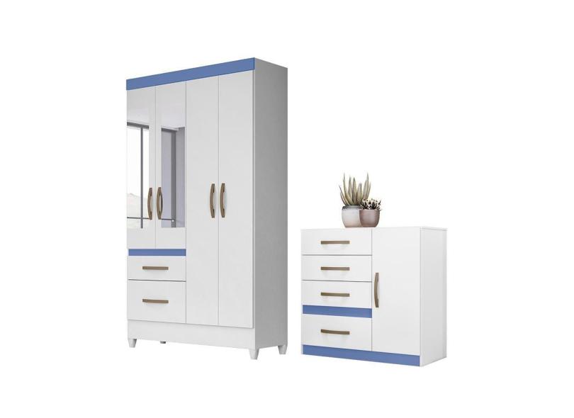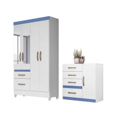 Conjunto Guarda Roupa Com Espelho e Cômoda Petra