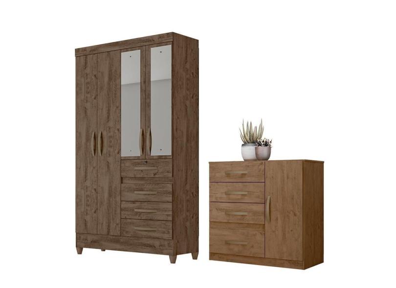 Conjunto Guarda Roupa Com Espelho E Cômoda Seicheles Castanho Wood