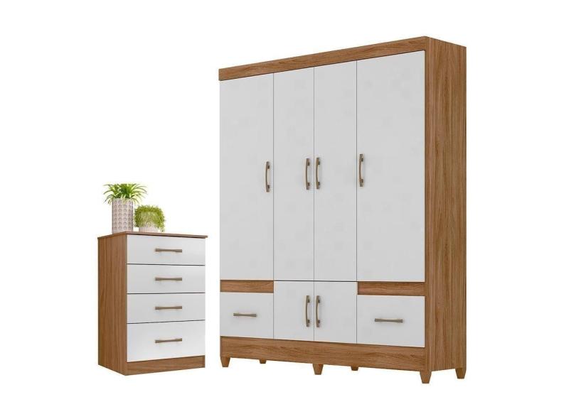 Conjunto Guarda Roupa E Cômoda Gokyo Naturale Branco