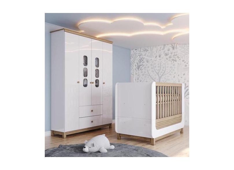 Conjunto Quarto de Bebê Berço 2 em 1 e Guarda-Roupa Sophia Espresso Mó