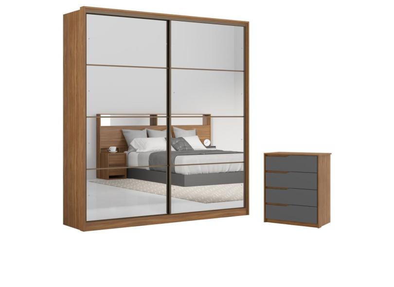 Conjunto Quarto Guarda Roupa Com 2 Espelhos E Comoda Napolis Amendola Grafito