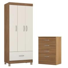 Conjunto Quarto Guarda Roupa E Comoda Jones Amendola Off-White