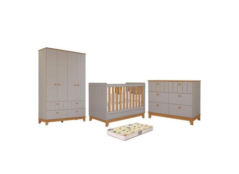 Dormitório Biscoito Guarda Roupa, Cômoda e Berço com Colchão Supreme - Permóbili Baby