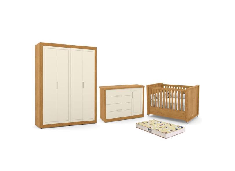 Dormitório Tutto New 4 Portas, Cômoda 1 Porta, Berço Freijó/Off White Com Colchão D18 - Matic Móveis