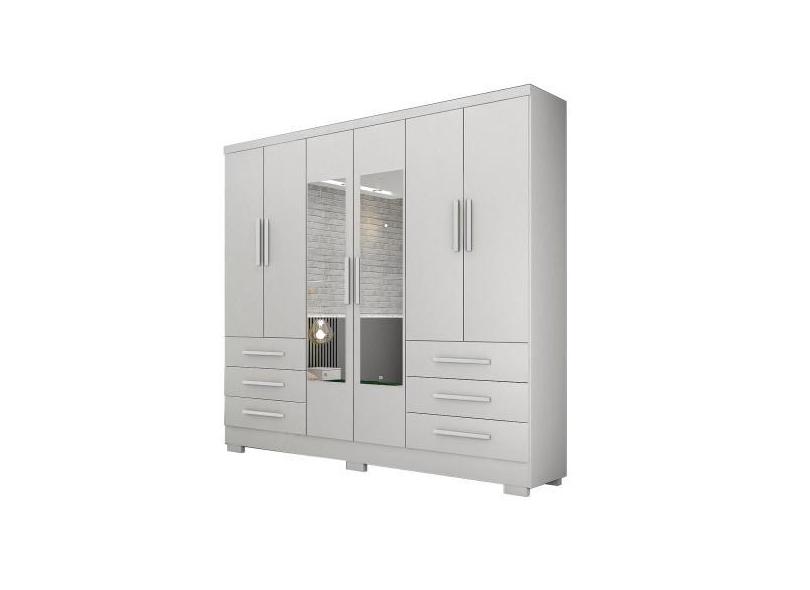Guarda Roupa 100% Mdp 6 Portas 6 Gavetas Com Espelho Com 6 Pés Branco