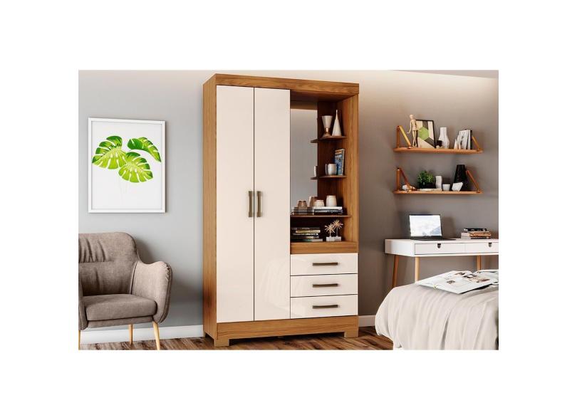 Guarda Roupa 2 Portas E 3 Gavetas C Espelho Briz B64 Nature Off White Henn