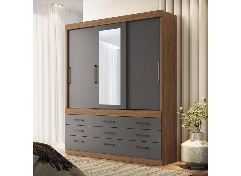 Guarda Roupa 3 Portas E 9 Gavetas Com Espelho Click Santos