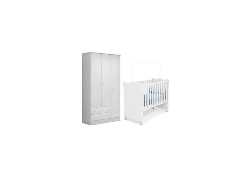 Guarda Roupa 3 Pts e 2 Gav. e Berço Branco Qmovi