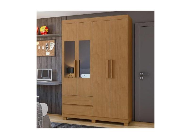 O menor preço encontrado no Brasil para Guarda-roupa 4 Portas 2 Gavetas Zeus com espelho e com Pés Amêndoa Clean atualmente é R$ 620,98.