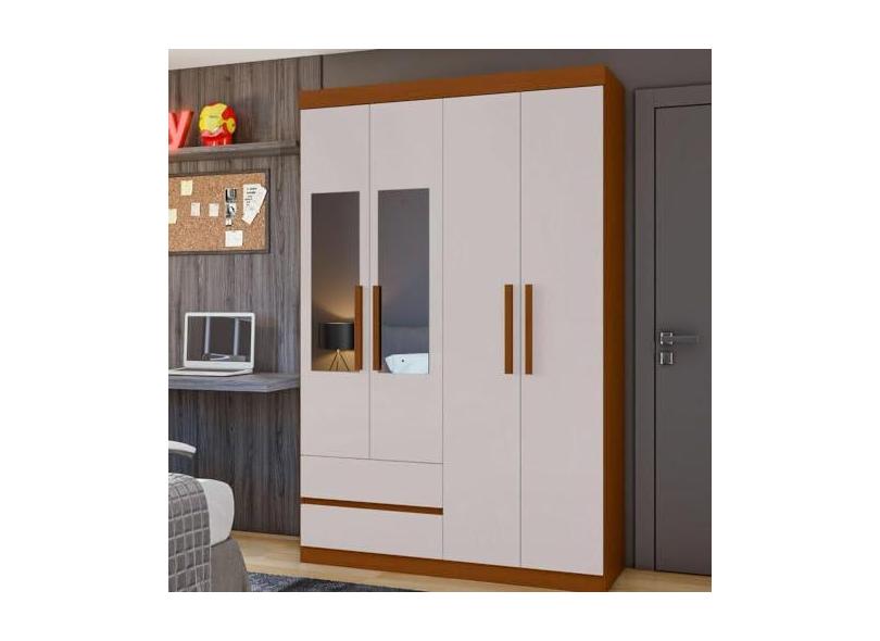 Guarda-roupa 4 Portas 2 Gavetas Zeus com Espelho Frassino