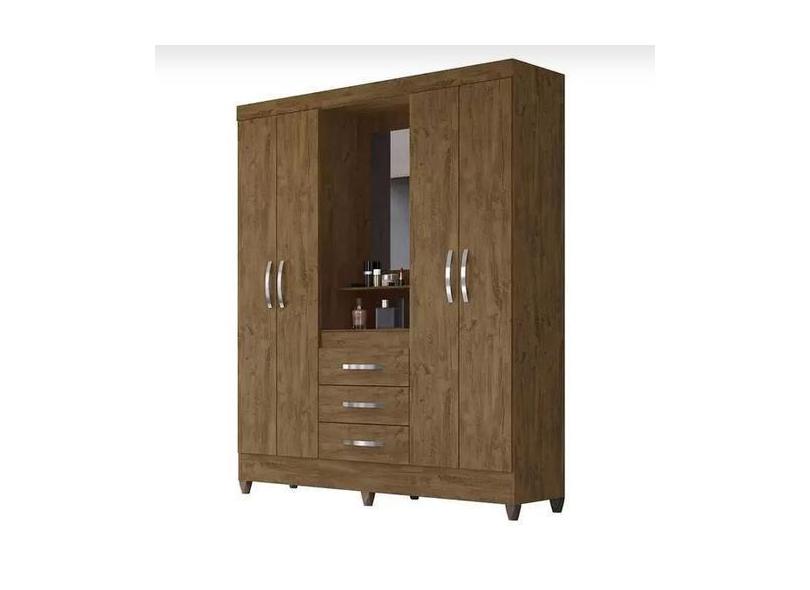 Guarda Roupa 4 Portas, 3 Gavetas 1,65 m Com Espelho Castanho Moval C