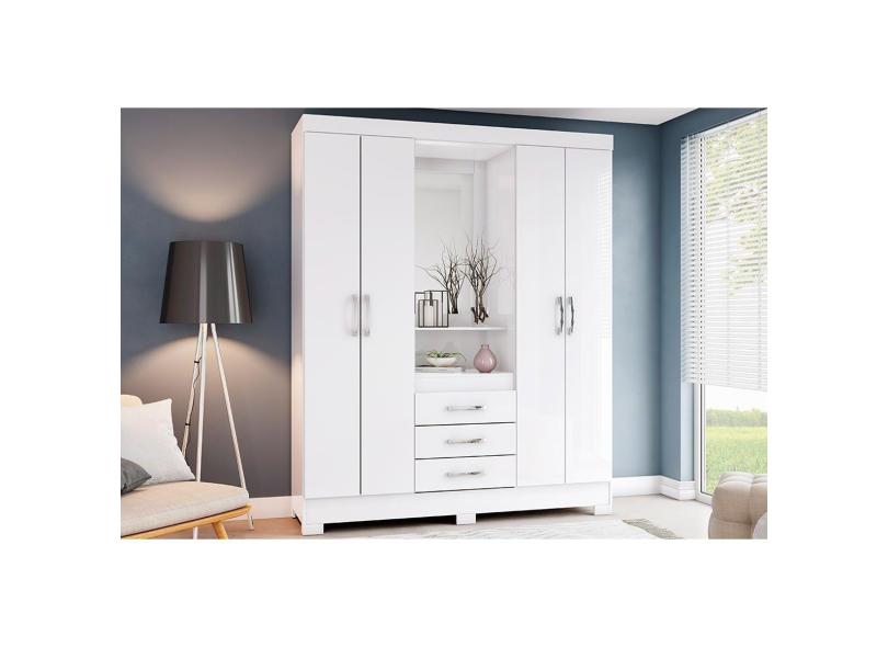 Guarda Roupa 4 Portas E 3 Gavetas C/ Espelho E Pés Briz B24 Branco - Henn