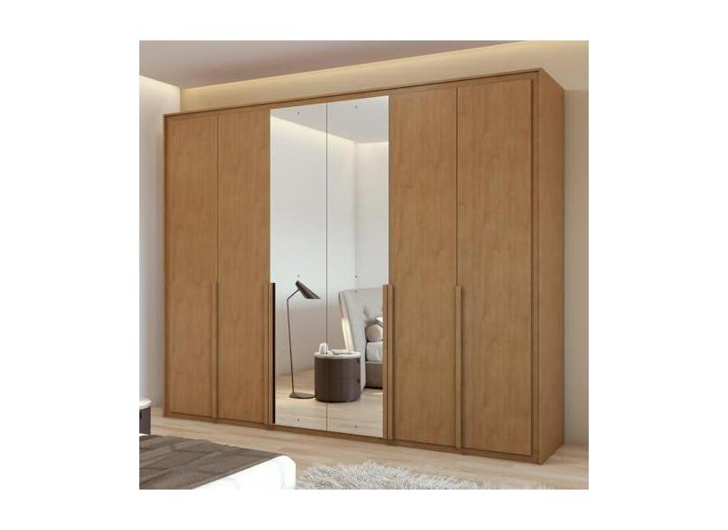 Guarda-roupa 6 Portas 6 Gavetas 100% Mdf Imperatore com espelho Amêndoa Clean