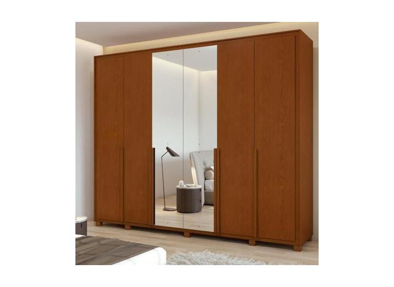 Guarda-roupa 6 Portas 6 Gavetas 100% Mdf Imperatore com Espelho e com Pés Frassino