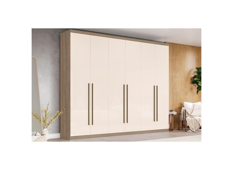 Guarda Roupa 6 Portas E 3 Gavetas Jade Rustico Off White Henn