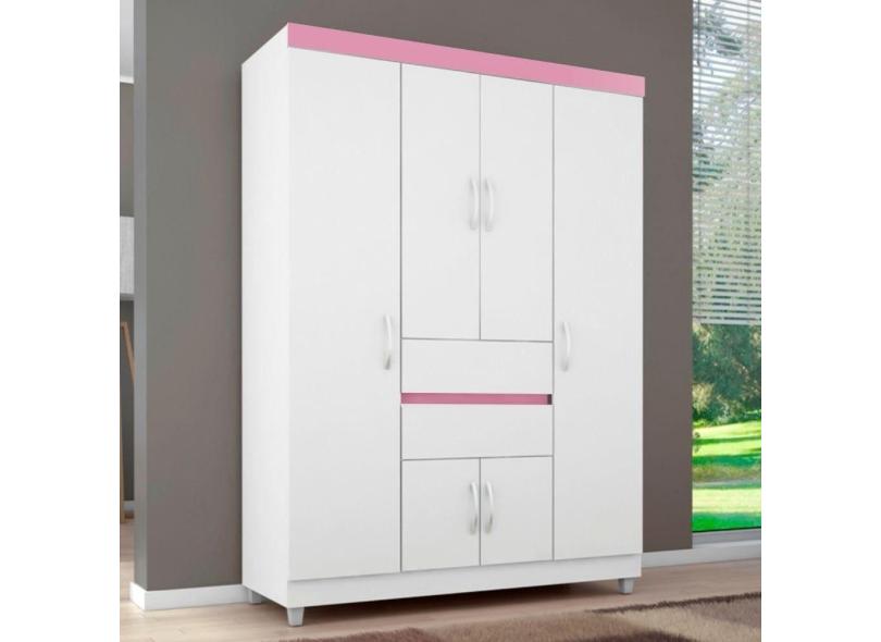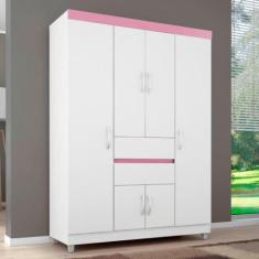Guarda Roupa 6p Dresden Branco/rosa/branco