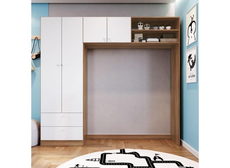 Guarda Roupa Aconchego 4 Portas 2 Gavetas E 2 Nichos - Branco/Nogal