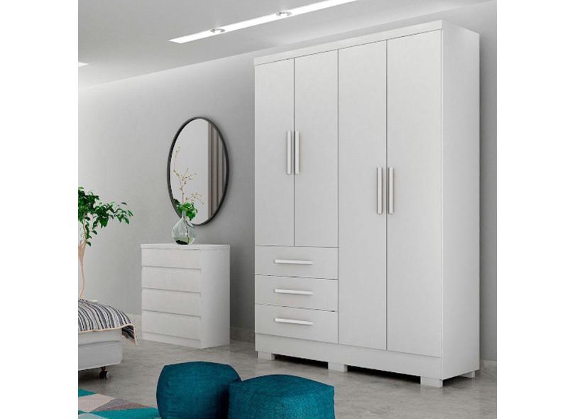 Guarda Roupa Agata 4 Portas 3 Gavetas Com 6 Pés Branco