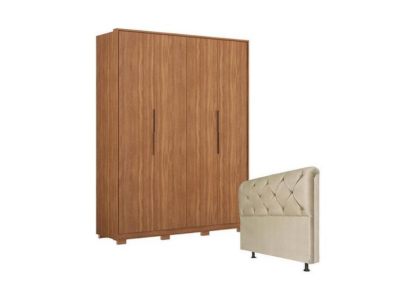 Guarda Roupa Attore 4 Portas Amêndola Com Pés E Cabeceira Daiana 140 C