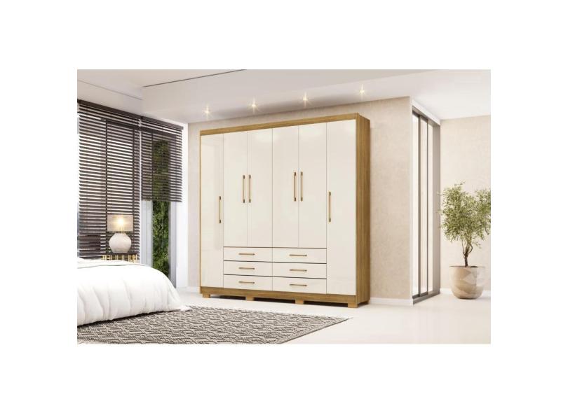 Guarda Roupa Canadá 6 Portas e 6 Gavetas - Cor Nature / Champanhe - Vila Rica