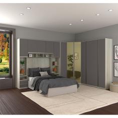 Guarda Roupa Canto Casal Com Vidro Reflecta Crema Com Cinza