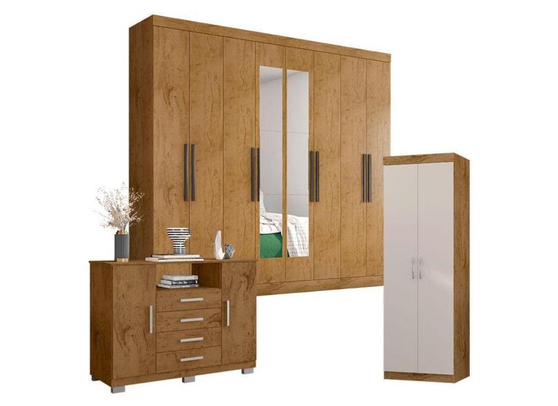 Guarda Roupa Casal 1684 Com Espelho Multiuso 6020 E Cômoda 8020 Freijó - Araplac